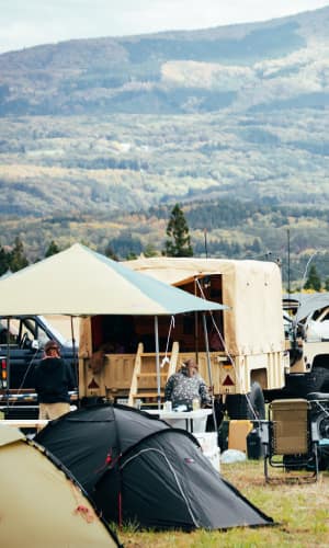 - 会場内にはオフィシャルのテーブルやイスは最小限となっています。必要な方は「アウトドアチェア」や「シート」をご持参ください。