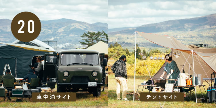 - 会場内にはオフィシャルのテーブルやイスは最小限となっています。必要な方は「アウトドアチェア」や「シート」をご持参ください。